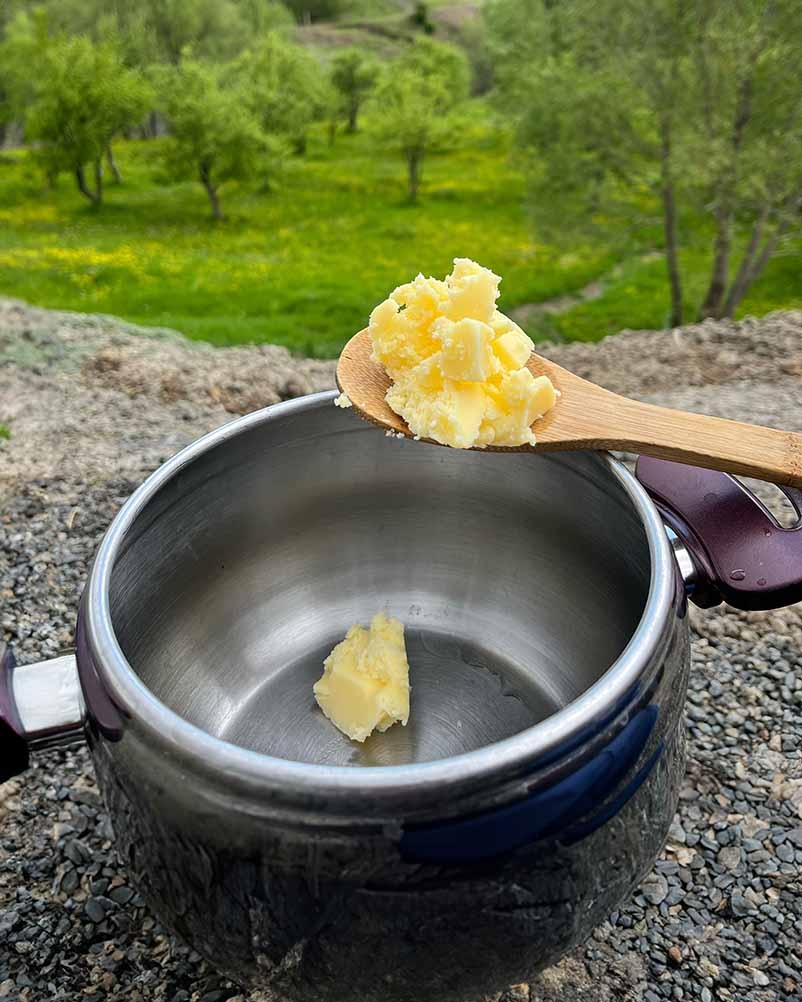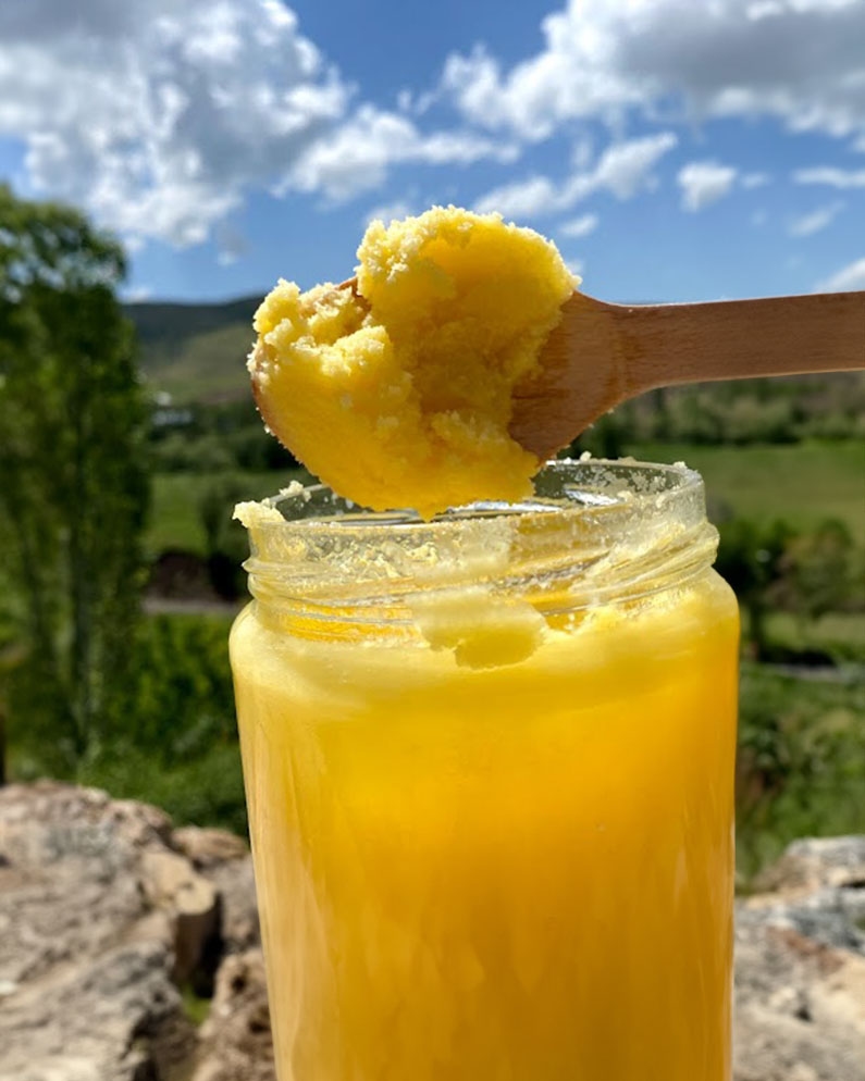 Sade Yağ Nedir? Türkçede saf yağ, erinmiş yağ ve sarı yağ olarak; yabancı dillerde ghee ve clarified butter olarak bilinen sade yağ , tereyağının suyundan ve yağsız maddelerinden arındırılmış özüdür. Osmanlı döneminde “revgan-ı sade” olarak adlandırılan bu yağ, hem saray mutfağında hem de halk sofralarında kullanılmıştır. Tereyağı %10–20 oranında su ve %85 oranında yağ içerirken, sade yağ %99 oranında süt yağı içerir. 1 kilogram tereyağından yaklaşık 900 gram sade yağ elde edilir. Sade Yağ Nasıl Yapılır? Tereyağı eritilip 35–40 dakika boyunca kaynatılarak ayranından, tortusundan ve suyundan arındırılır. Ardından sıkı dokunmuş bir bezden geçirilerek kavanozlara konur. Bu işlem sonunda geriye neredeyse tamamen süt yağı kalır. Sade Yağ Nasıl Tüketilir? Sade yağ, farklı yemeklerde tercih edilebilen çok yönlü bir üründür: Kızartmalarda, sotelerde ve kavurmalarda, Börek, tatlı ve özellikle baklavada, Pilav, makarna ve çorba tariflerinde kullanılabilir. Tereyağı yüksek ısıda daha çabuk yanarken, sade yağ 200–240 °C’ye kadar dayanıklıdır. Bu nedenle uzun süre ve yüksek ateşte pişen yemeklerde kullanılabilir. Sade Yağ Nasıl Saklanır? Buzdolabında: 1 yıla kadar tazeliğini koruyabilir. Oda Sıcaklığında: Serin ve kuru bir yerde uzun süre saklanabilir. Dondurucu: Saklamaya gerek yoktur. Osmanlı Mutfağında "Revgan-ı Sade" Osmanlı döneminde sade yağ, “revgan-ı sade” adıyla bilinir ve mutfaklarda sıkça tercih edilirdi. Kavurmalar, pilavlar ve tatlıların önemli bir malzemesi olmuş, uzun süre bozulmadan saklanabilmesi nedeniyle yaygın olarak kullanılmıştır. Köyden Gelsin Sade Yağ Köyden Gelsin olarak, çayırlarda doğal otlarla beslenen ineklerden elde edilen sütlerle sade yağ üretiyoruz. Katkı maddesi ve koruyucu içermeyen sade yağlarımızı, soğuk zincir paketleme yöntemiyle Türkiye’nin her yerine gönderiyoruz.